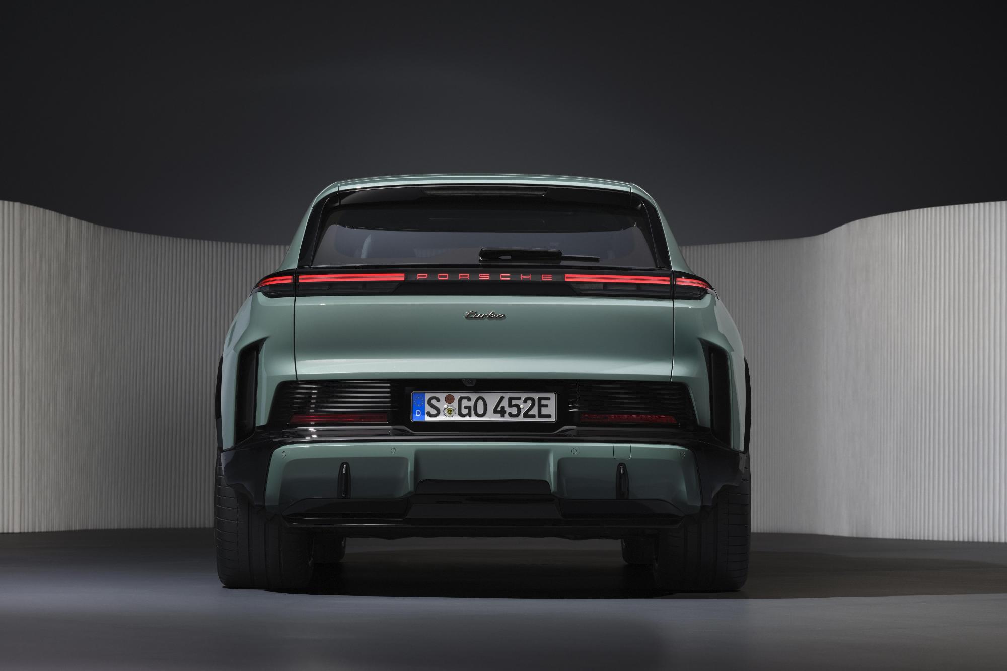 Η νέα Cayenne Electric είναι διαθέσιμη με 13 χρώματα αμαξώματος, εννέα σχέδια ζάντας και ζάντες των 20-22in. Αποτελεί το πρώτο μοντέλο της κατηγορίας του που έχει αεροδυναμικό συντελεστή στα 0,25 υπόσχοντας υψηλές επιδόσεις και κορυφαία εμπειρία οδήγησης. Τα μπροστινά φωτιστικά σώματα μοιάζουν πολύ με αυτή της Macan με την ίδια την Porsche να δηλώνει πως η εξωτερική εμφάνιση είναι βγαλμένη από την τελευταία σχεδιαστική γλώσσα της μάρκας. Η Cayenne Turbo Electric διαθέτει ενεργή αεροτομή, ενεργά κανάλια αέρα και ενεργές αεροκουρτίνες στο πίσω μέρος του προφυλακτήρα. Επίσης, ο πίσω προφυλακτήρας ξεχωρίζει με τα ενιαία φωτιστικά σώματα, καθώς και την 3D αποτύπωση των γραμμάτων «Porsche».