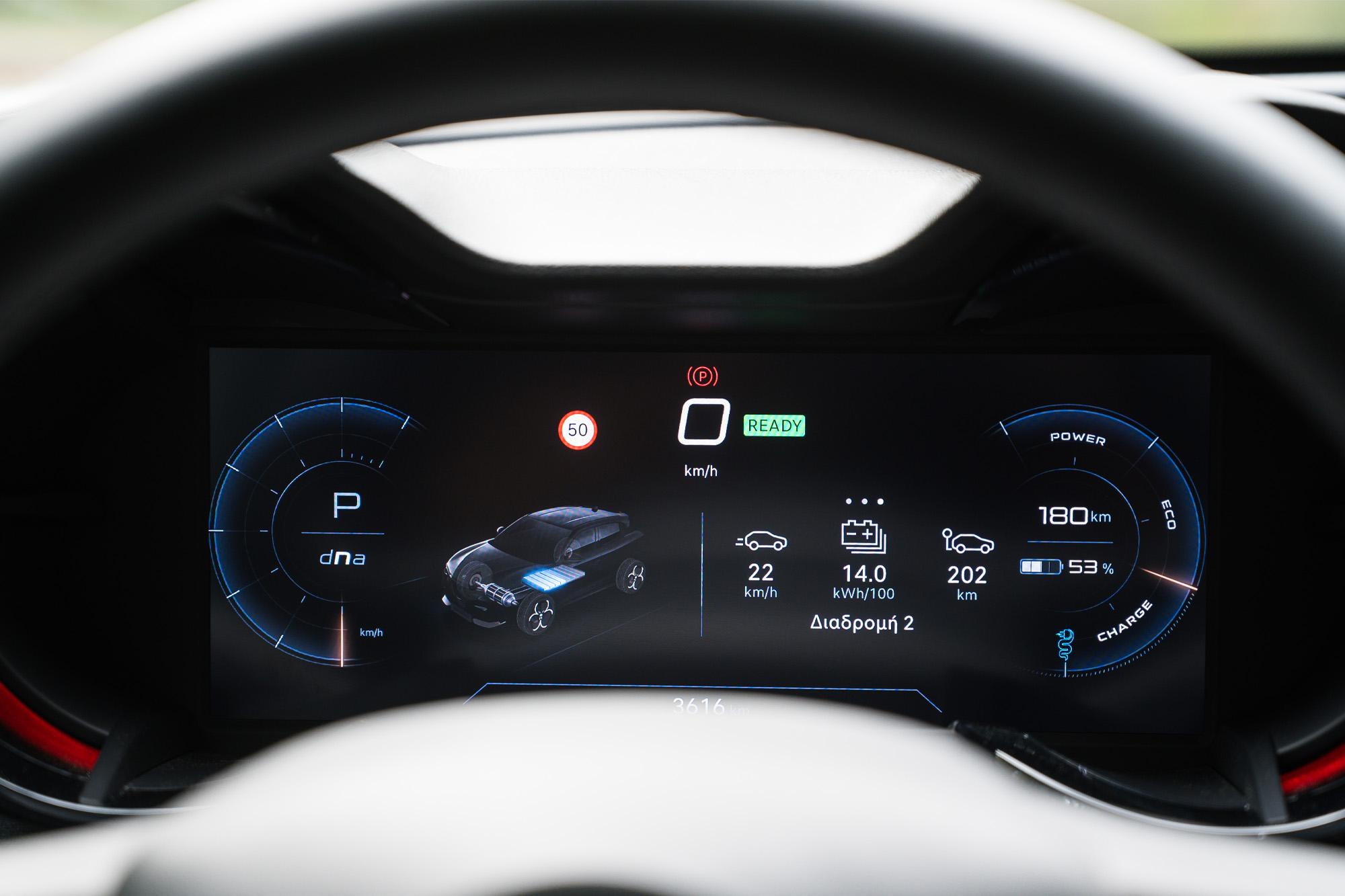 Το τεχνολογικό πακέτο περιλαμβάνει προηγμένα συστήματα υποβοήθησης οδηγού ADAS, όπως το Highway Assist και το πάντα χρήσιμο Adaptive Cruise Control. Στην έκδοση Speciale, που είχαμε στη διάθεσή μας, το σύστημα πλοήγησης της TomTom είναι στάνταρ και παρέχει ενημερώσεις σε πραγματικό χρόνο, ενισχύοντας την άνεση και την ασφάλεια στις μετακινήσεις, αλλά και λειτουργία route planner, διευκολύνοντας τον εντοπισμό σταθμών φόρτισης για τον ευκολότερο και πιο ξέγνοιαστο προγραμματισμό κάποιας μεγάλης διαδρομής.