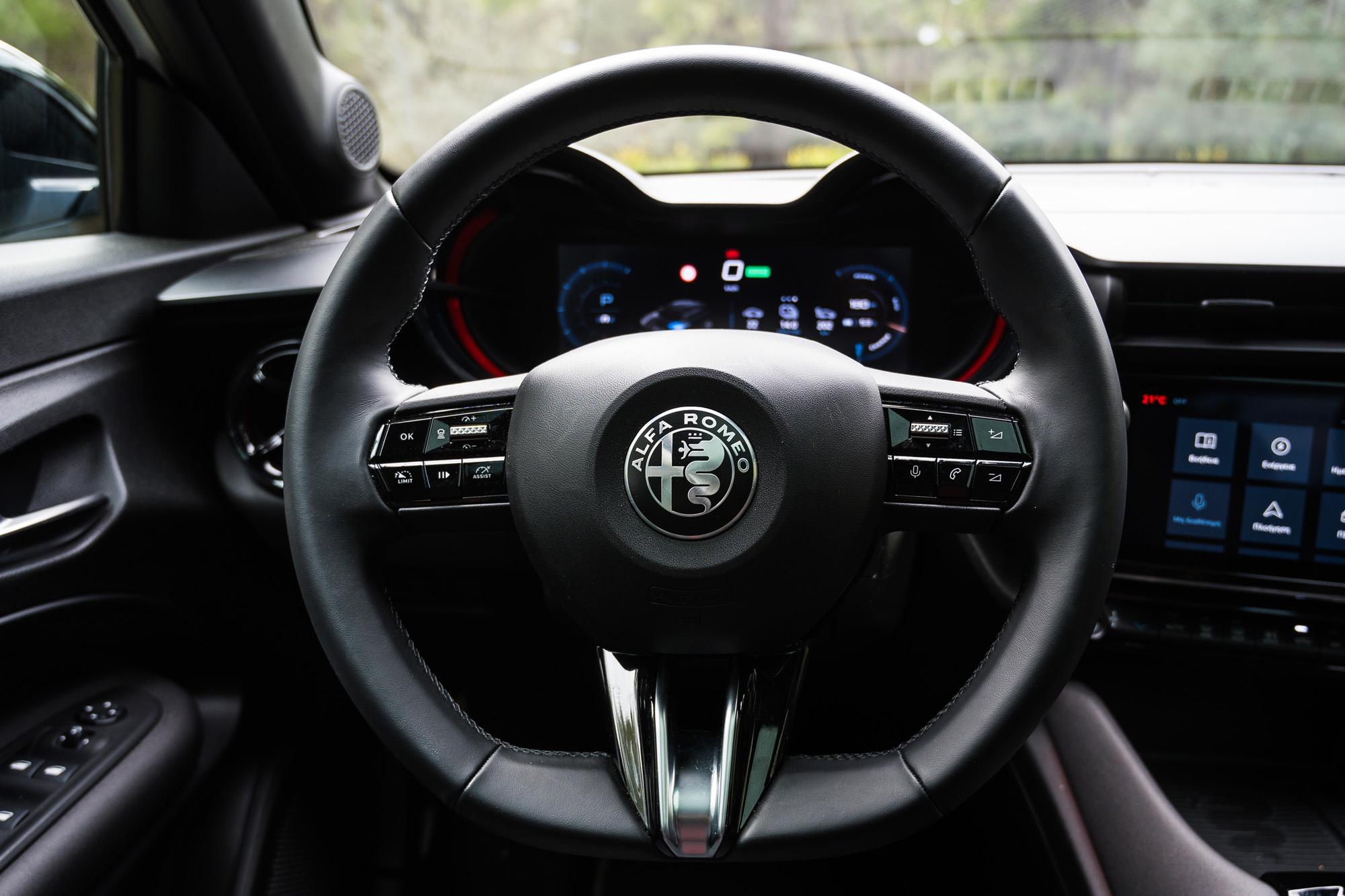 Σε ό,τι αφορά τη φόρτιση, η μέγιστη ισχύς φτάνει τα 100kW, επιτρέποντας την ανάκτηση ενέργειας από το 20% στο 80% σε 27 λεπτά μέσω ταχυφορτιστή DC. Σε wallbox των 11kW, μια πλήρης φόρτιση ολοκληρώνεται σε περίπου 6 ώρες. Οι επιδόσεις και η αίσθηση επιτάχυνσης επηρεάζονται σημαντικά από το επιλεγμένο πρόγραμμα οδήγησης. Στα προγράμματα Advanced Efficiency και Natural, η ισχύς του ηλεκτροκινητήρα περιορίζεται και η απόκριση του γκαζιού είναι κάπως νωχελική. Αντίθετα, με το πρόγραμμα Dynamic, η απόκριση του μοτέρ αλλάζει σημαντικά, το τιμόνι γίνεται βαρύτερο και η αίσθηση του συστήματος διεύθυνσης είναι ανώτερη σε σχέση με τα περισσότερα ηλεκτρικά μοντέλα. Τα πρώτα 100km/h από στάση έρχονται σε 9sec, και η μέγιστη ταχύτητα περιορίζεται στα 150km/h. Τα νούμερα αυτά σίγουρα δεν θα εντυπωσιάσουν τους φανατικούς της Alfa Romeo, αλλά για τους πιο θερμόαιμους, να θυμίσουμε ότι υπάρχει και η έκδοση Veloce με τα 280Ps.