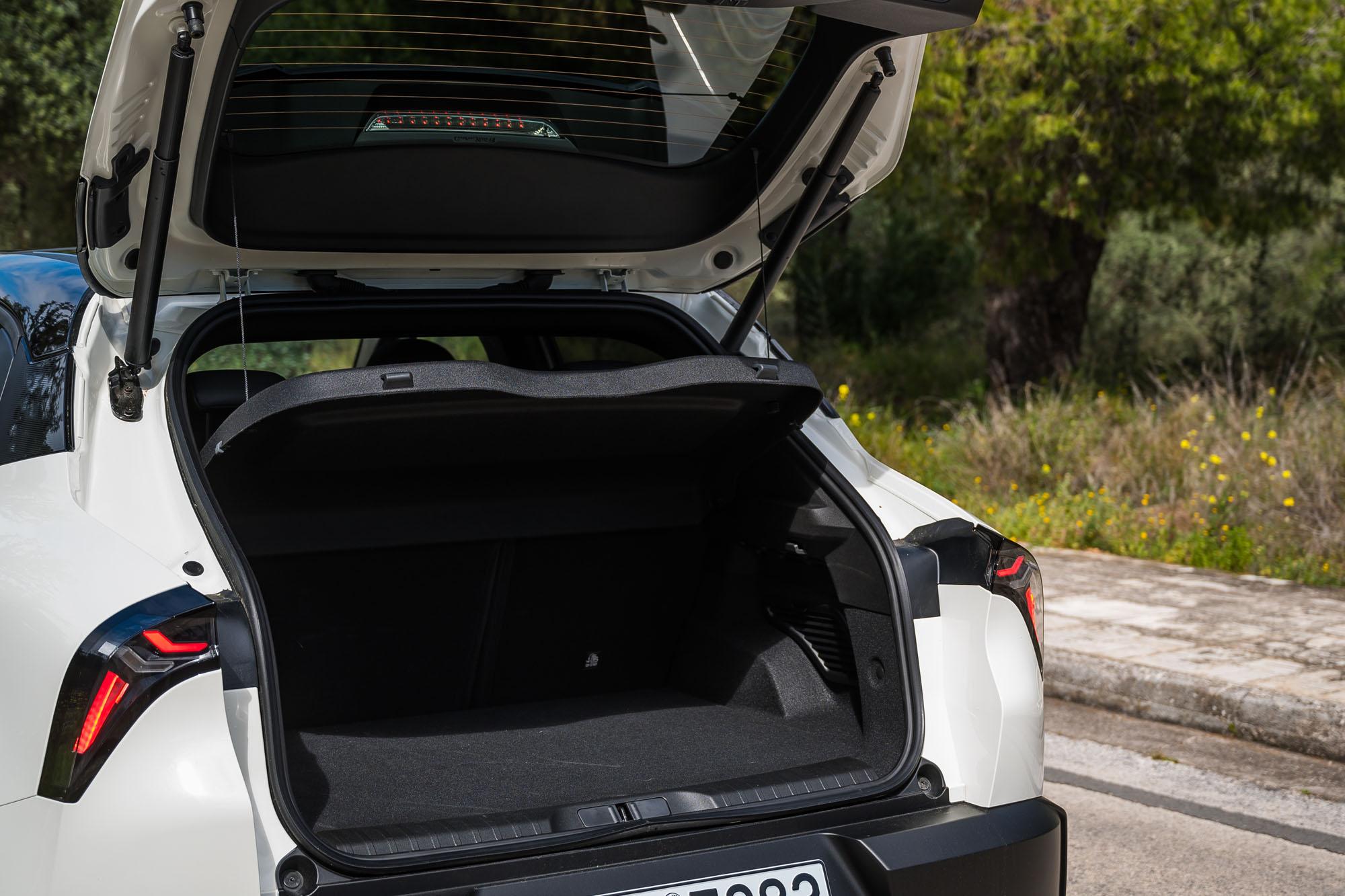 Ο χώρος για τους πίσω επιβάτες είναι επαρκής αυστηρά για δύο άτομα (λόγω του τούνελ μετάδοσης και του υποβραχιόνιου που έρχεται αρκετά πίσω), ενώ όσοι είναι άνω του 1,85m δεν θα έχουν χώρο για τα γόνατά τους. Αντίθετα, ο χώρος αποσκευών των 400 λίτρων είναι απόλυτα ανταγωνιστικός και πρακτικός, χάρη στο διπλό πάτωμα και το cable organizer που διευκολύνει την αποθήκευση του καλωδίου φόρτισης.