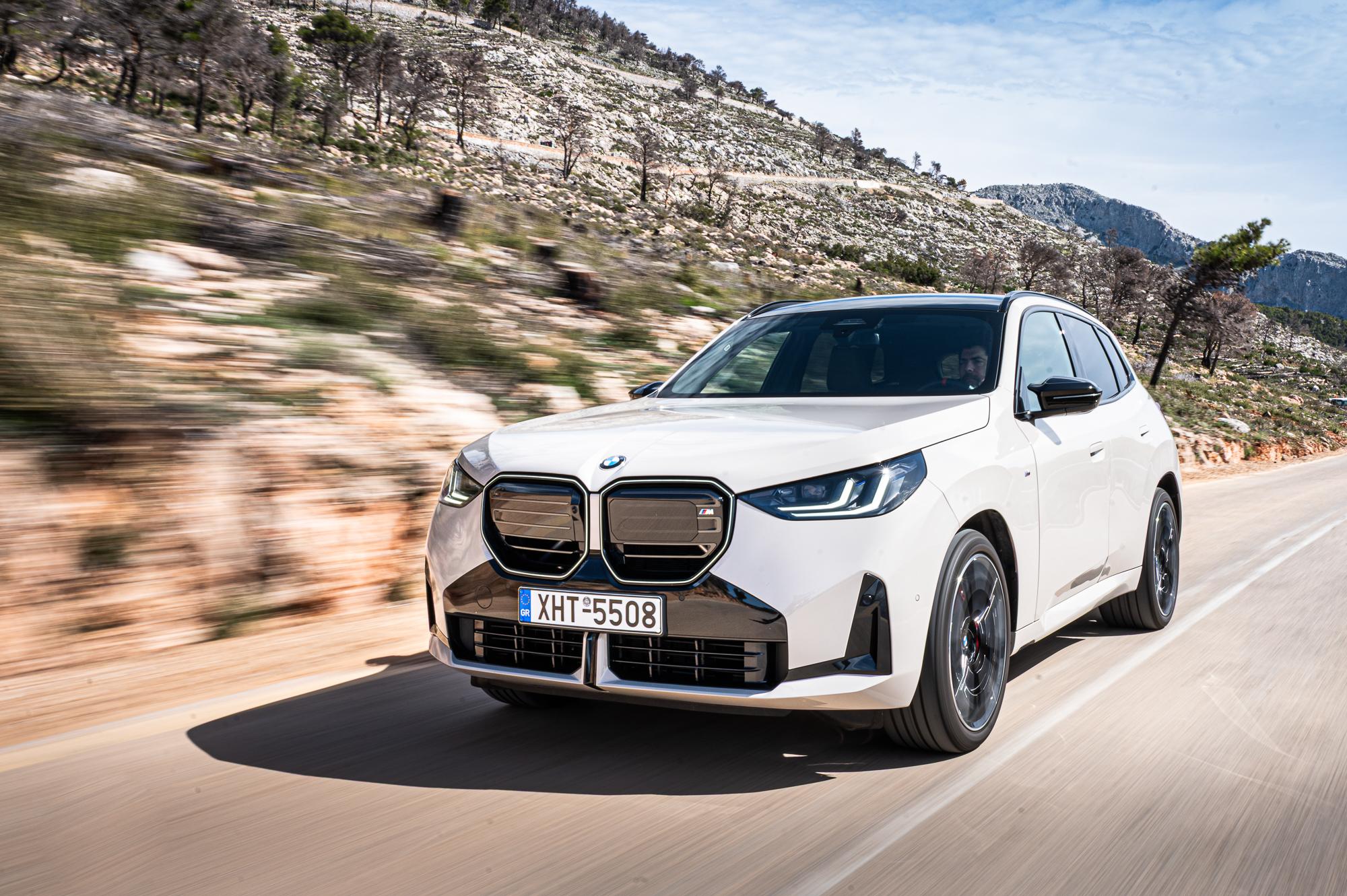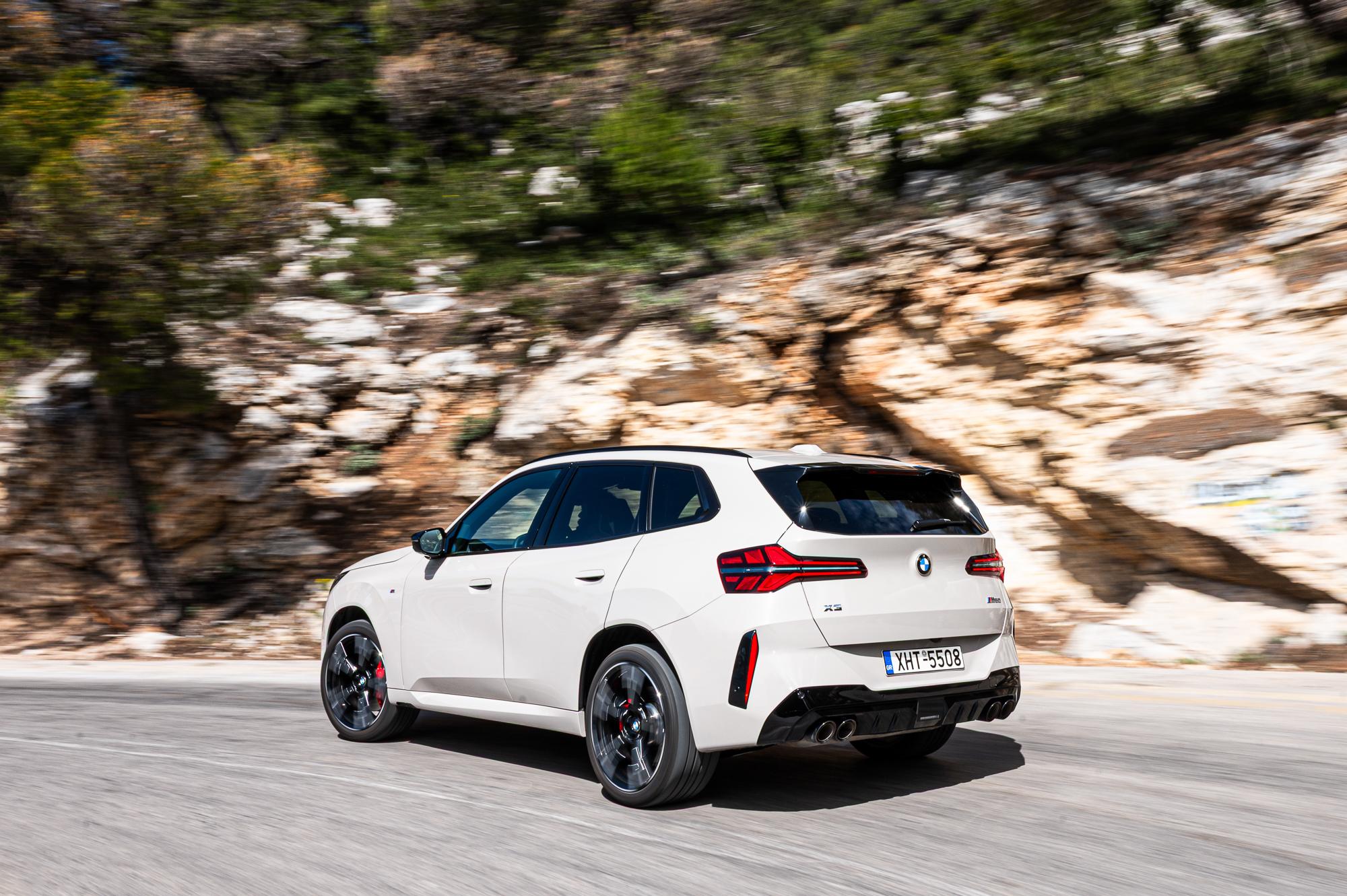 Η έκδοση M50 ξεχωρίζει από τις υπόλοιπες παραλλαγές της X3 μέσω πιο δυναμικών σχεδιαστικών επεμβάσεων. Οι πιο επιθετικοί προφυλακτήρες, οι τέσσερις απολήξεις της εξάτμισης και οι μαύρες ενθέσεις στο μπροστά και πίσω μέρος προσδίδουν στο μοντέλο μία ιδιαίτερα επιβλητική παρουσία. Η γκάμα της νέας X3 διαθέτει πολλές επιλογές κινητήρων βενζίνης, diesel και plug-in hybrid, όμως εδώ θα εστιάσουμε στην κορυφαία έκδοση, την Μ50 xDrive, που είναι εξοπλισμένη με τον εξακύλινδρο κινητήρα B58, τον οποίο θεωρώ ως έναν από τους καλύτερους κινητήρες αυτήν την στιγμή στην αγορά. Δεν μιλάμε για το πιο δυνατό, ούτε το πιο οικονομικό, ούτε το πιο αθόρυβο, ούτε το πιο οικολογικό μοτέρ. Μιλάμε όμως για αυτό που έχει τον καλύτερο συνδυασμό όλων αυτών, την χρυσή τομή. Δεν χρειάζεται περισσότερο σε τίποτα και δεν υστερεί πουθενά. Έχει τον τέλειο συνδυασμό απόδοσης, (κανένας σώφρων άνθρωπος δεν θα ζητήσει περισσότερη δύναμη σε πολιτικό αυτοκίνητο), απόλυτα συγκρατημένης κατανάλωσης καυσίμου και μια καταπληκτική καμπύλη ροπής που έχει δύναμη από πολύ χαμηλά και δεν κρεμάει ποτέ, ούτε ακόμα και όταν φτάσει στον κόφτη. Είναι απλά τέλειο.