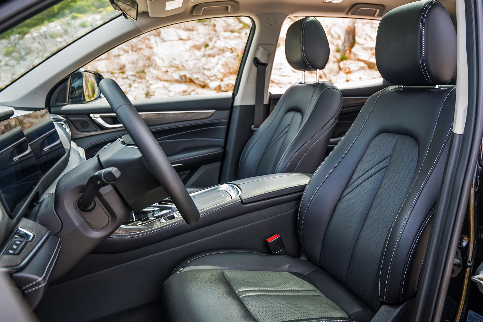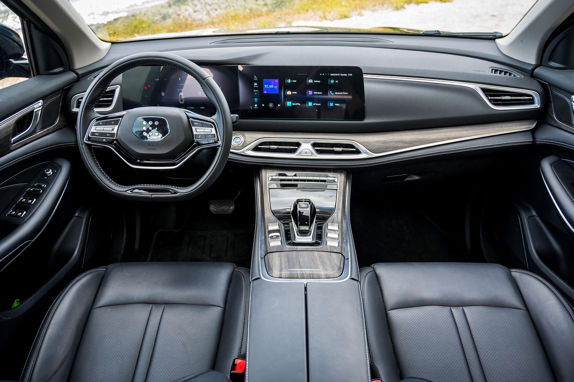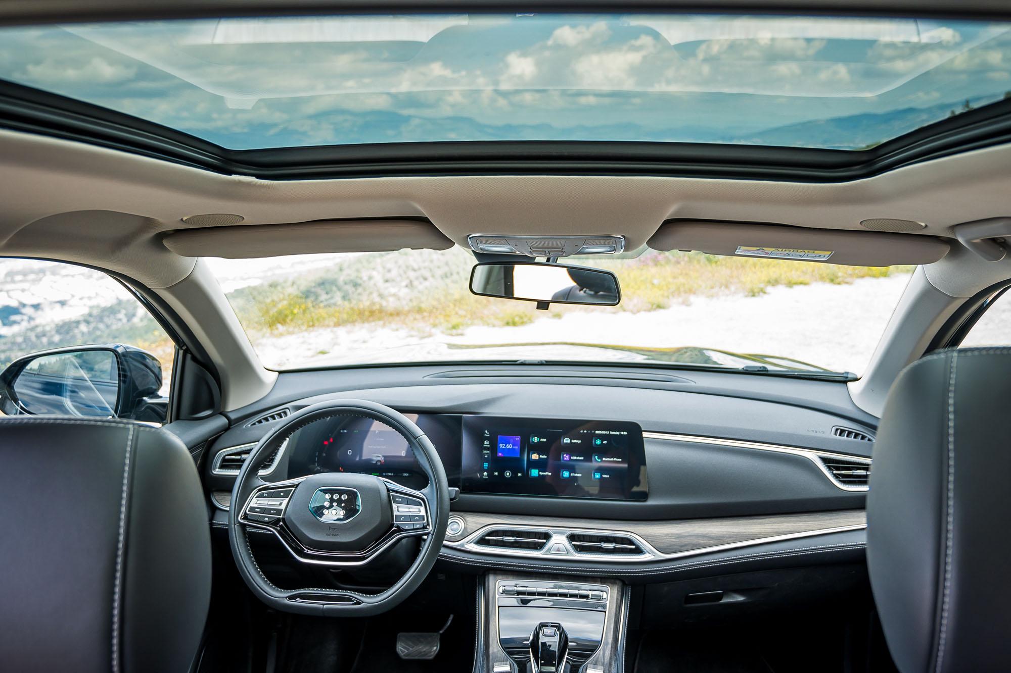 Ο οδηγός κάθεται αρκετά ψηλά για να απολαμβάνει άριστη ορατότητα, όμως όσοι είναι άνω του 1,90m θα ήθελαν περισσότερη διαδρομή του καθίσματος προς τα πίσω. Αντιλαμβάνεσαι γρήγορα ότι το E5 έχει σχεδιαστεί με προτεραιότητα την άνεση και την ευκολία χρήσης. Το plug-in hybrid σύνολο είναι αποδοτικό, με πολύ καλή και ξεκούραστη λειτουργία, με τον ηλεκτροκινητήρα να έχει τον πρώτο λόγο στην κίνηση και το θερμικό μοτέρ να βρίσκεται στο παρασκήνιο κυρίως για να υποστηρίξει τις ανάγκες σε επιτάχυνση. Η συνολική ισχύς των 250 ίππων και των 30,6kgm ροπής προκύπτουν από τον συνδυασμό ενός τετρακύλινδρου ατμοσφαιρικού κινητήρα 1,5lt απόδοσης 102Ps με έναν ηλεκτροκινητήρα 177Ps.