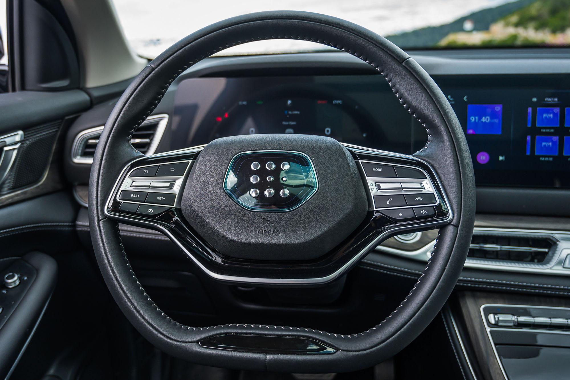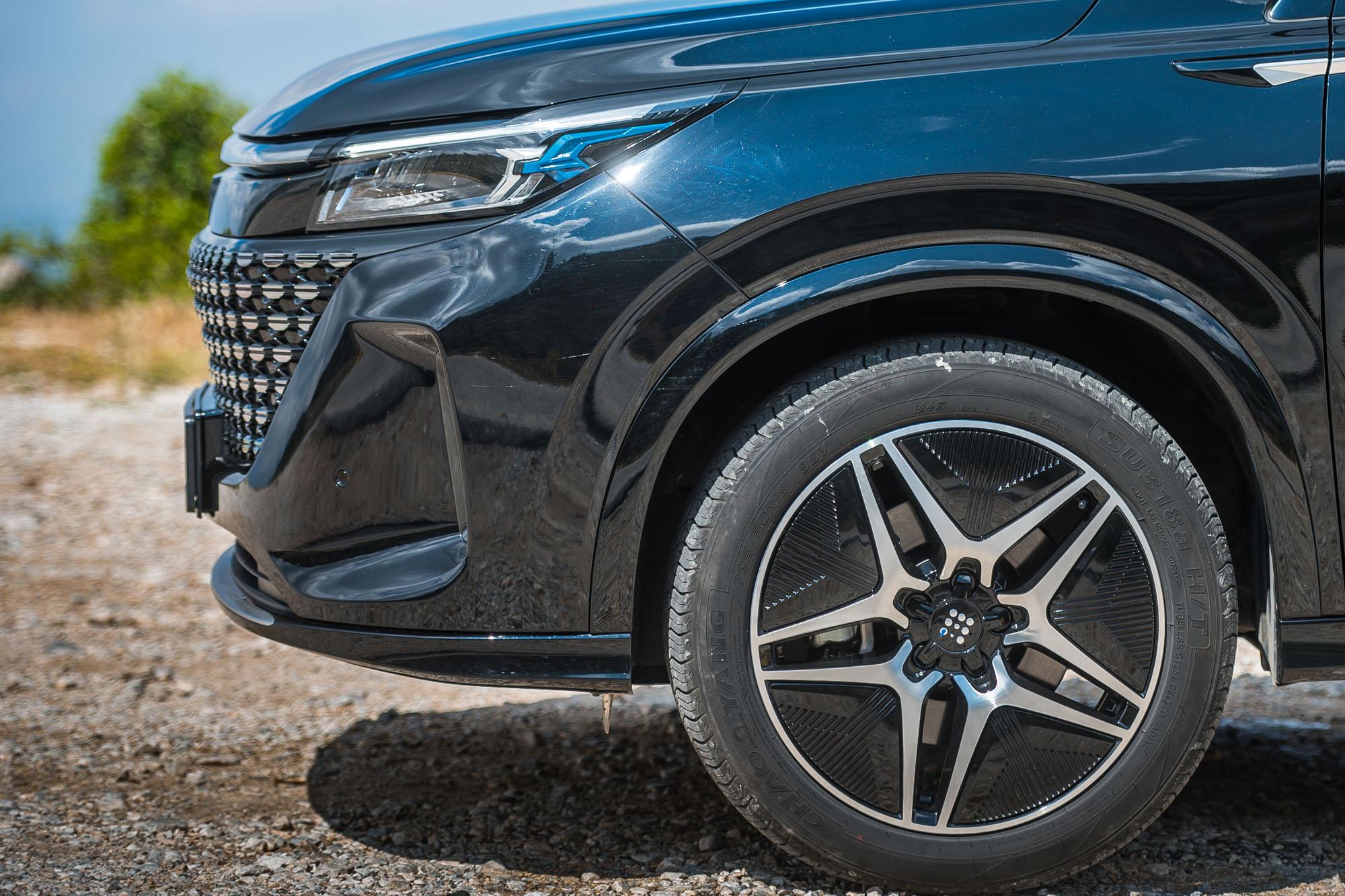 Οδηγικά, το E5 είναι ξεκάθαρα εστιασμένο προς την άνετη και οικονομική μετακίνηση. Η ανάρτηση είναι σχετικά μαλακή για PHEV SUV βάρους 1,8 τόνων και μπορεί να τα καταφέρνει καλά στο φιλτράρισμα των ανωμαλιών, όμως επιτρέπει γενναίες κλίσεις από το αμάξωμα, ιδιαίτερα αν δεν είσαι γλυκός με το τιμόνι. Μόνο ορισμένες ξερές αντιδράσεις σε έντονες ανωμαλίες χαλούν την γενικότερα καλή εικόνα της ανάρτησης, κάτι στο οποίο σίγουρα δεν βοηθούν και τα μέτρια ελαστικά (235/50) της Chao Yang. Το κιβώτιο E-CVT είναι ομαλό στη λειτουργία του και αποφεύγει το ανέβασμα των στροφών ψηλά, κάτι στο οποίο αρέσκονται αντίστοιχα κιβώτια. Στο τέρμα γκάζι, η ισχύς επαρκεί απόλυτα, με την επιτάχυνση 0-100km/h να απαιτεί 7,4sec (παραδόξως η τελική είναι περιορισμένη χαμηλά στα 165km/h), όμως το γενικότερο setup της ανάρτησης, το ελαφρύ και μέτριο σε πληροφόρηση τιμόνι, το «αυστηρό» ESP και τα ελαστικά που απογοητεύουν με την πρόσφυσή τους θα σε κάνουν να μειώσεις γρήγορα ρυθμό και να κινηθείς με «οικογενειακούς» ρυθμούς. Τα φρένα είναι ικανοποιητικά σε απόδοση, αλλά το πεντάλ θέλει εξοικείωση κάτι που ισχύει στα περισσότερα ηλεκτρικά και plug-in hybrid.