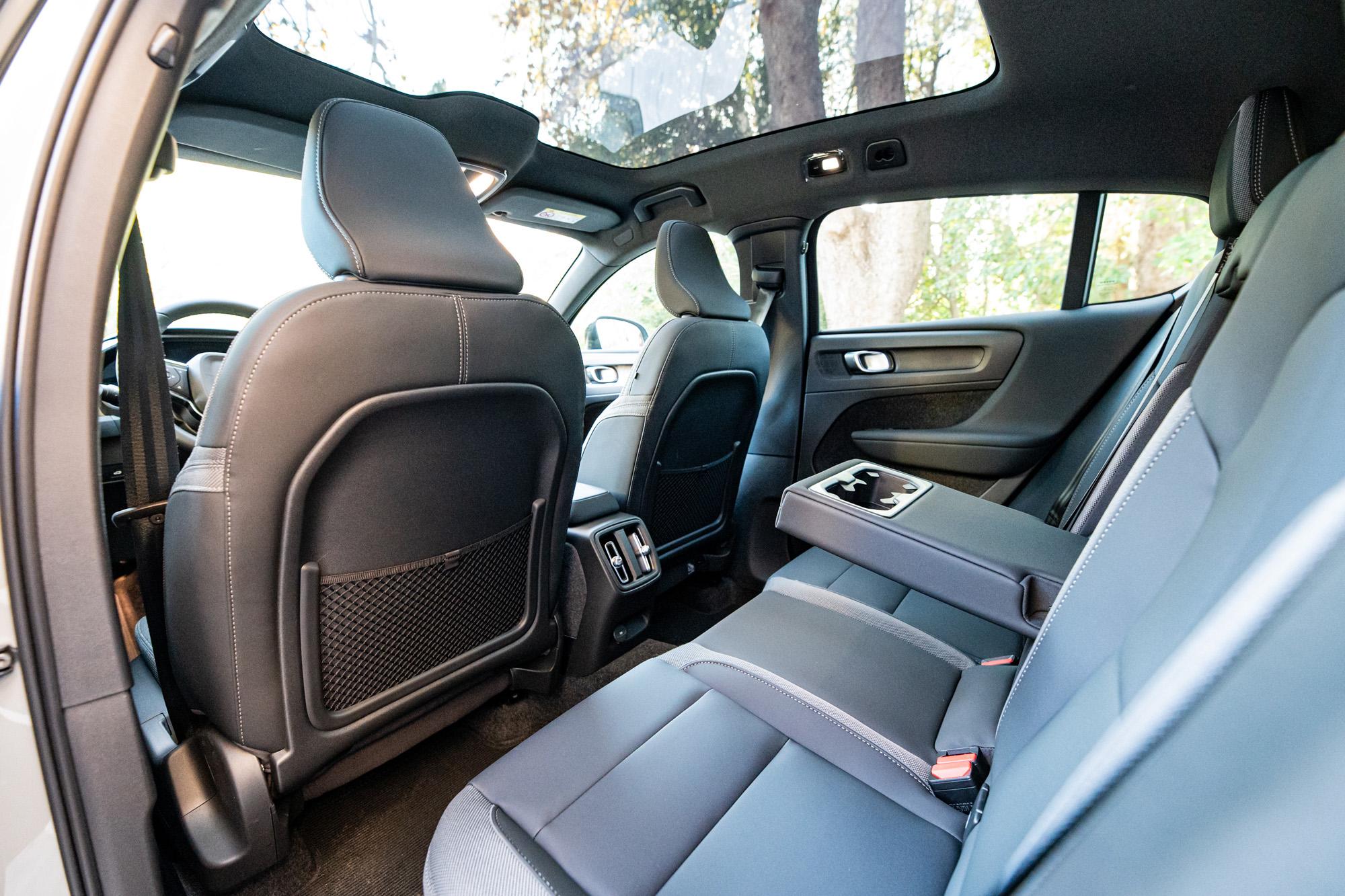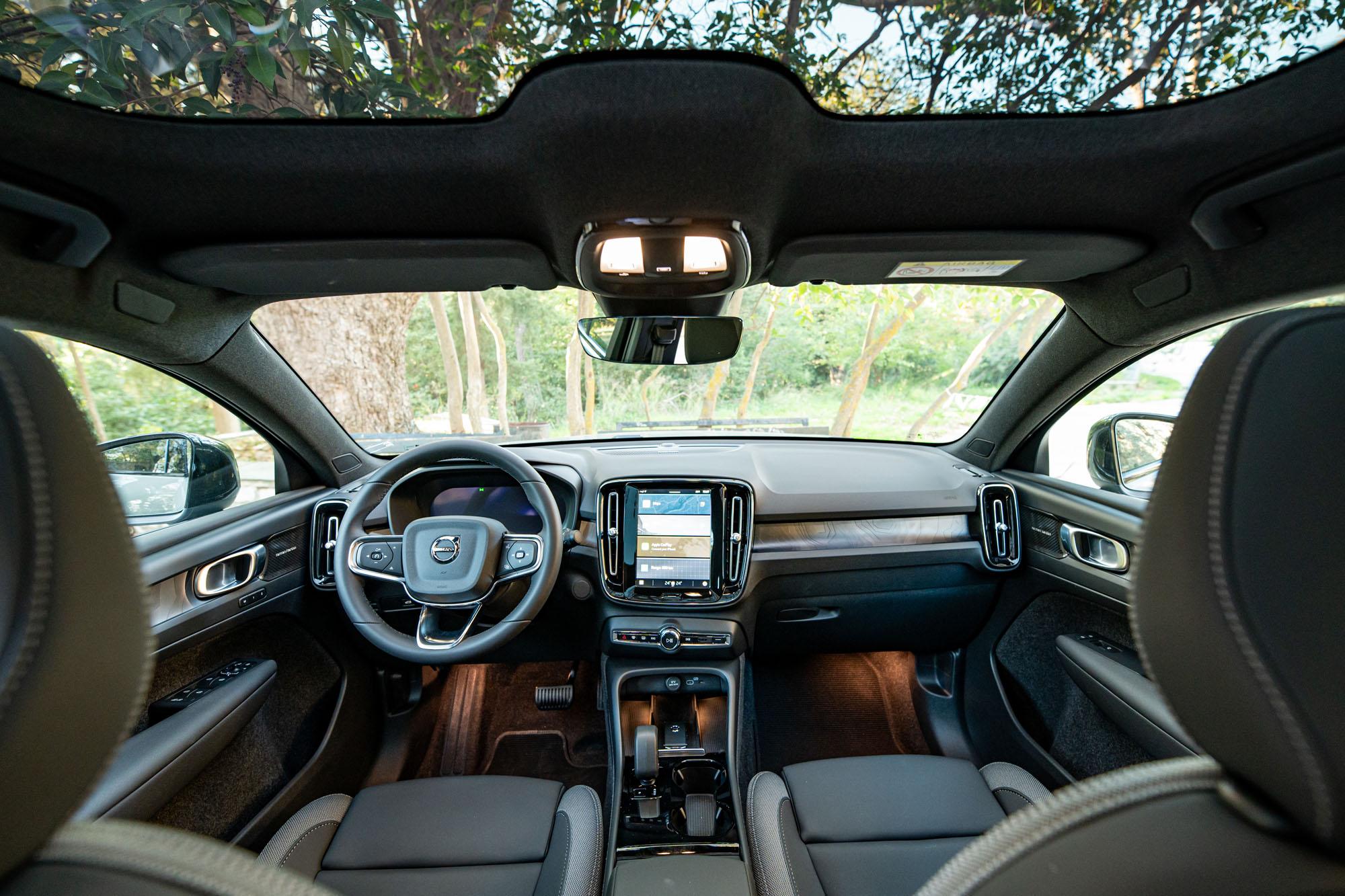 Μικρές αλλαγές συναντάμε και στο εσωτερικό όπου τίποτα δεν έχει αλλάξει σε επίπεδο σχεδίασης. Όλες οι εκδόσεις του EC40 έχουν στάνταρ ένα πλήρως vegan εσωτερικό (με τις εκδόσεις Ultra να προσθέτουν επενδύσεις από συνθετικό δέρμα Microtech), ενώ πολύ όμορφη είναι η επιλογή Tailored Wool που κοστίζει €2.418 και διαθέτει έναν μοναδικό συνδυασμό με διακοσμητική επιφάνεια Driftwood, κρυστάλλινο επιλογέα ταχυτήτων από την Orrefors και καθίσματα Comfort σε ανοιχτόχρωμη υφασμάτινη επένδυση, κατασκευασμένη από 30% μαλλί και 70% ανακυκλωμένο πολυεστέρα. Άλλο ένα must στον προαιρετικό εξοπλισμό είναι το πακέτο Climate (+1.029 ευρώ) που προσθέτει θερμαινόμενα εμπρός καθίσματα και τιμόνι, αλλά και αντλία θερμότητας που συνεισφέρει στην αύξηση της αποδοτικότητας και της αυτονομίας.