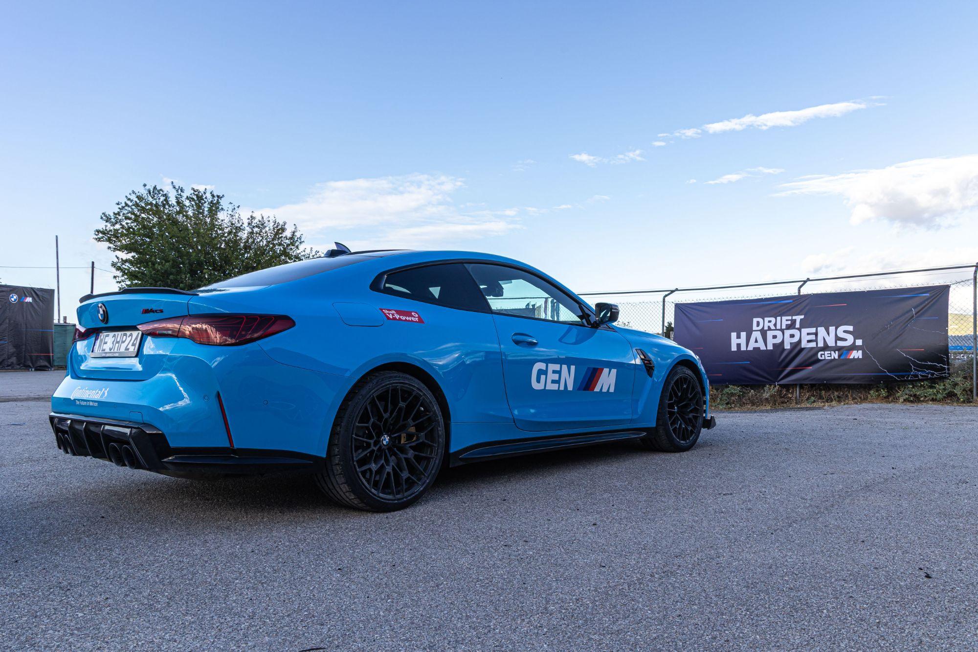 Στην επόμενη φάση βρεθήκαμε στον χώρο των pits όπου οι εκπαιδευτές είναι στήσει μισό skidpad, το οποίο συνεχώς βρεχόταν έτσι ώστε να μας δώσουν την δυνατότητα να διαπιστώσουμε τον τρόπο που συμπεριφέρεται μία M4 όταν ηθελημένα σπάσεις την πρόσφυση των πίσω τροχών σε βρεγμένο οδόστρωμα. Οι δύο ανοιχτές M4 Competition είναι φυσικά τετρακίνητες, όμως τα στελέχη της BMW είχαν επιλέξει την 2WD λειτουργία και είχαν ρυθμίσει στο κουμπί M1 το ESP στην θέση 3 από τις 10 συνολικά και στο M2, στην πλήρη απενεργοποίηση του. Μας ζητήθηκε να δοκιμάσουμε τις 2 πρώτες φορές με το DSC στην πρώτη ρύθμιση, όμως έπειτα από την πρώτη προσπάθεια μου φάνηκε πολύ εύκολο και έτσι όλες τις επόμενες προσπάθειες τις έκανα με το DSC πλήρως απενεργοποιημένο.